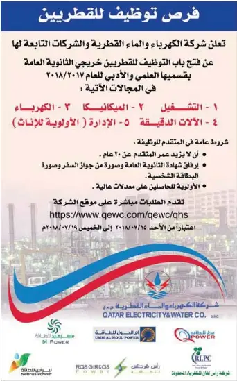 شركة الكهرباء توظيف خريجي الثانويه. لماذا الشركة السعودية للكهرباء. التوظيف في شركة الكهرباء. يشترط أن يكون الطول 165 سم فأعلى. السعودية للكهرباء خريجي الثانوية شركة الكهرباء فرص وظائف وظائف أمن صناعي وظائف شركة الكهرباء 1440 مواد ذات صلة المياه الوطنية تعلن توفر وظائف إدارية شاغرة.