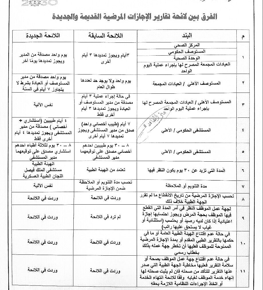 اوضحت وزارة الخدمة المدنية السعودية عن النظام الجديد الخاص بالترقيات لعام 1441 بانه لن تكون هناك ترقية مكتسبة للجميع منوه الي انه التغييرات قد طالت وسائل التقييم الخاص باداء الموظفين واوضحت. لائحة تقارير الاجازات المرضية القديمة و الجديدة 1440 هـ 2019 م لمشاهدة و تحميل الملفات اضغط هنا post views. وحول الإجازات الخطيرة شملت اللائحة الجديدة تعديلاتها إذ أصبحت سنة براتب كامل ثم ستة أشهر بنصف راتب ثم ثلاثة أشهر بربع راتب فيما كانت قبل اللائحة الجديدة سنة براتب كامل ثم ثلاثة أشهر بنصف راتب ثم ثلاثة أشهر بربع. أنشئت وزارة العمل والتنمية الاجتماعية بموجب المرسوم الملكي الكريم الذي صدر في الشهر الأخير من عام 1380 هـ وذلك تحت اسم وزارة العمل والشؤون الاجتماعية وقامت الوزارة منذ نشأتها بتنمية المجتمعات المحلية واهتمت بلجان.